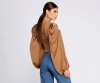 Dress up your everyday fall look with this adorable satin smocked blouse! It features long billowy sleeves with elastic banded cuffs, a square neck and back, a stretchy smocked back, ruched detailing down the front with dual drawstrings, and a cropped hem. The satin-like fabric has no stretch.