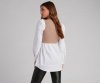 - Long sleeves, single-button details