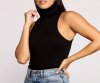 ! The bodysuit features a mock neck, a sleeveless bodice, and composed of a retentive crepe knit fabric that offers a moderate stretch.?