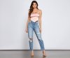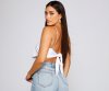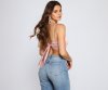 Add some sparkle to your look with this trendy satin scarf top! It features a sleeveless square neckline, thin rhinestone straps, an open back with a tie closure, and a cropped, V-shaped front hem. Style this top with high-rise mom jeans and